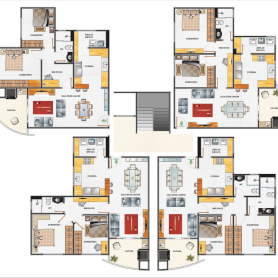 O edifício conta com 2 salas comerciais e 23 apartamentos, além de 28 boxes de garagem. Existe sistema de coleta de água da chuva para uso em áreas comuns, salão de festas com terraço e os apartamentos possuem 01 suíte, 01 dormitório, sacada com churrasqueira, escritório e cozinha com balcão americano.
